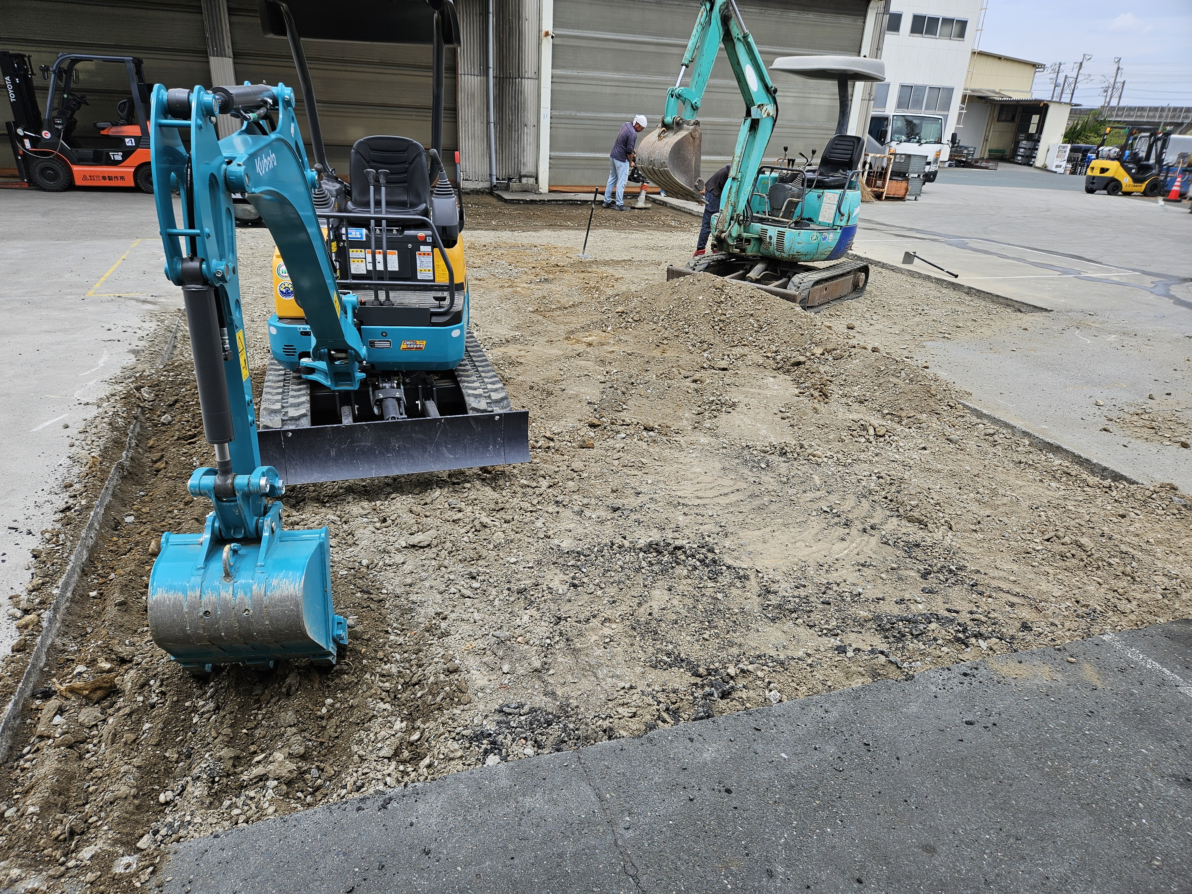 舗装されたアスファルトが重量のあるトラックやフォークリフトにより破損されたため、その箇所をコンクリートにする工事です。