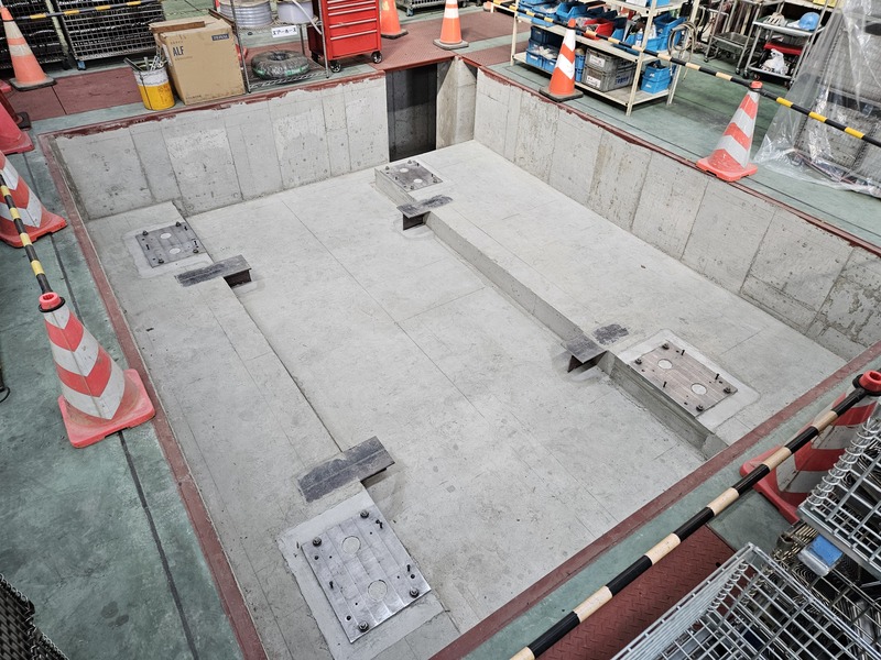 型枠を入れ、鉄筋を敷きます。将来的に振動等でコンクリートが建物から離れないようケミカルアンカーを施します。